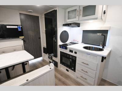 You're going to love all of the conveniences and versatility of this travel trailer! The front Murphy bed can fold away to reveal a sofa which gives you a comfortable place to sit during the day and to sleep at night too. The rear full bath features everything you will need to get squeaky clean each morning, as well as a large wardrobe for you to store your linens. After you have whipped up your best meal with the two-burner cooktop or convection microwave, you can head to the booth dinette and enjoy eating it there comfortably.