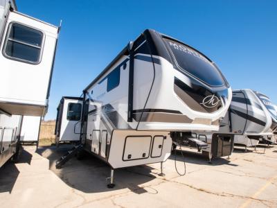 Sleeps 4 Slides 3 Length 34 ft Ext Height 13 ft 4 in Interior Color Arlington, Kingston Hitch Weight 2455 lbs Dry Weight 11692 lbs Cargo Capacity 3608 lbs Fresh Water Capacity 75 gals Grey Water Capacity 88 gals Black Water Capacity 49 gals Tire Size ST235/80R16G Furnace BTU 35000 btu Available Beds King Refrigerator Type GE Energy Star Residential with Ice Maker Refrigerator Size 18 cu ft Cooktop Burners 3 Number of Awnings 2 Axle Weight 7000 lbs LP Tank Capacity 30 lbs Water Heater Type On Demand AC BTU 15000 btu TV Info LR 50" LED Smart TV Awning Info 10' and 16' Electric with LED Lights Axle Count 2 Washer/Dryer Available Yes Number of LP Tanks 2 Shower Type Radius Electrical Service 50 amp Similar Fifth Wheel Floorplans