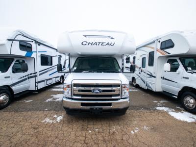 With any Chateau ESpec Class C gas motorhome by Thor Motor Coach, you will find convenient amenities, a modern interior, and a reliable Ford E-Series chassis, with an optional Chevy chassis on select models to power your adventures. There is welded tubular aluminum roof and sidewall cage construction, a one-piece fiberglass front cap, and a premium one-piece domed roof membrane for added strength. Residential vinyl flooring will be easy to keep clean, and you'll love the sleek look of the Hampton Collection two-toned cabinets. These motorhomes also include a 50 State 4.0 kW dual gas/LP generator and a 30-amp shoreline power cord to keep you going, along with a tankless water heater and 13,500 roof front A/C to ensure your comfort!
