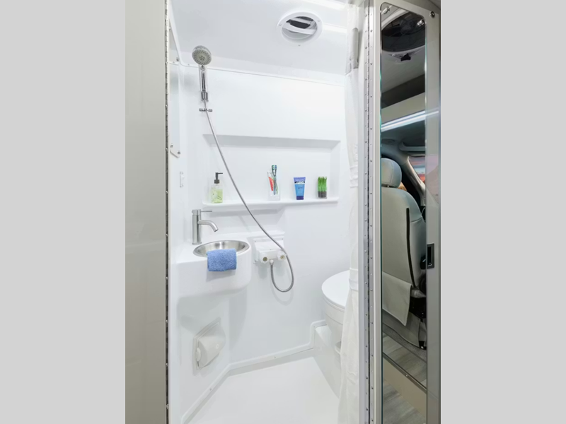 Sleeps 2 Length 21 ft 1 in Ext Width 6 ft 9 in Ext Height 9 ft 5 in Int Height 6 ft 3 in Interior Color Modern White Exterior Color Full Body Paint; Silver, White. Ceramic Gray Hitch Weight 5000 lbs GVWR 9350 lbs Fresh Water Capacity 35 gals Grey Water Capacity 14 gals Black Water Capacity 28 gals Furnace BTU 14300 btu Generator 2800 Gas Fuel Type Gasoline Engine 3.6L Pentastar V6 Chassis RAM ProMaster 3500 XT Horsepower 276 hp Fuel Capacity 24 gals Wheelbase 159 in Torque 250 ft-lb Refrigerator Type Single Door 12V Cooktop Burners 1 Shower Size 48" x 26" Number of Awnings 1 LP Tank Capacity 24.78 lbs. Water Heater Capacity 2.64 gal Water Heater Type Combi Eco LP AC BTU 11000 btu TV Info LR 24" Smart TV Awning Info 12' Thule Lateral Arm Power w/Integrated LED Lighting Gross Combined Weight 11500 lbs Shower Type Wet/Bath Shower Electrical Service 30 amp Solar Wattage 200 watts