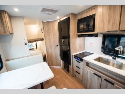 With any Winnebago Access travel trailer you will find thoughtful, clean, and contemporary designs filled with premium features that all have come to expect on any Winnebago towable. There are single and tandem axle models available, each with superior storage, durable construction, and spacious interiors. Each model features an NXG engineered frame, a one-piece TPO roof membrane, and durable sidewall metal, providing a long-lasting RV. The functional galley kitchen will make time at the campground easier than ever, and the stylish roller shades will provide privacy and shade when you need it!