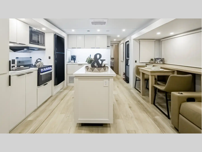 Sleeps 4 Slides 2 Length 36 ft 3 in Ext Width 8 ft Ext Height 11 ft 2 in Int Height 6 ft 8 in Interior Color Modern Luxe Hitch Weight 944 lbs GVWR 10400 lbs Dry Weight 8426 lbs Fresh Water Capacity 60 gals Grey Water Capacity 49 gals Black Water Capacity 49 gals Tire Size 225/75R15E Furnace BTU 30000 btu Available Beds Olympic Queen Refrigerator Type 12V Refrigerator Size 10.6 cu ft Cooktop Burners 3 Shower Size 30" x 40" Number of Awnings 2 Axle Weight 5200 lbs LP Tank Capacity 40 lbs Water Heater Type Tankless AC BTU 15000 btu TV Info Smart TV Awning Info 11' and 12' Powered patio awning w/LED lighting Axle Count 2 Washer/Dryer Available Yes Number of LP Tanks 1 Shower Type Standard Electrical Service 30 amp Solar Wattage 200 watts Similar Floorplans